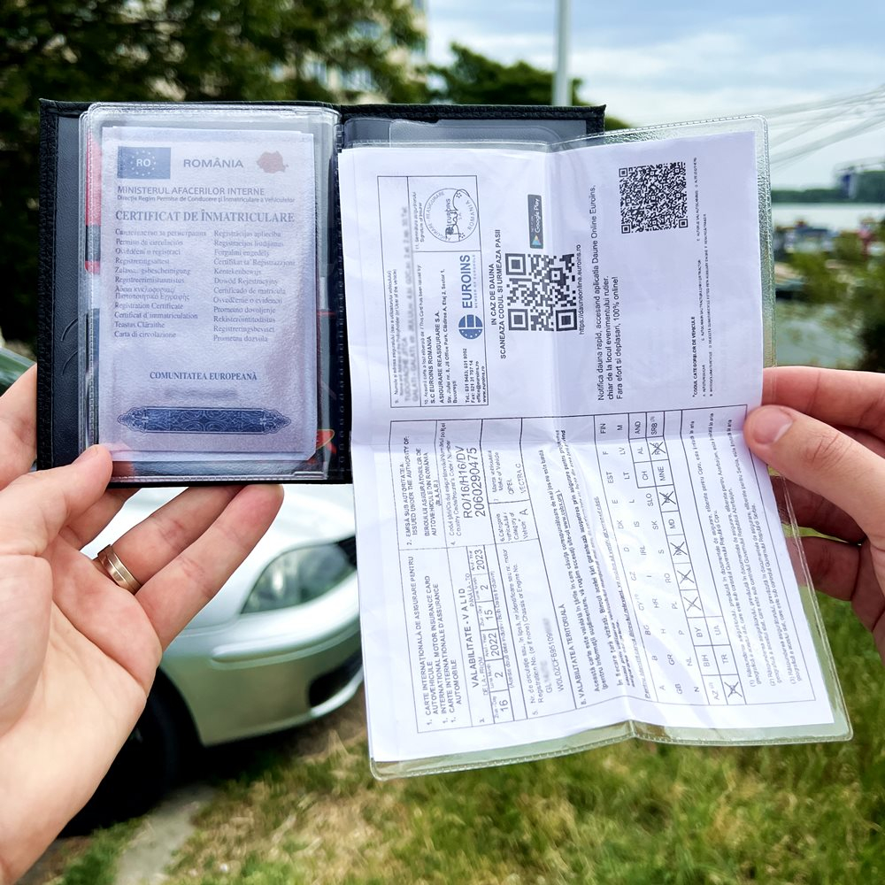 Port Acte Auto din Piele Personalizat cu Sigla si Numarul Masinii